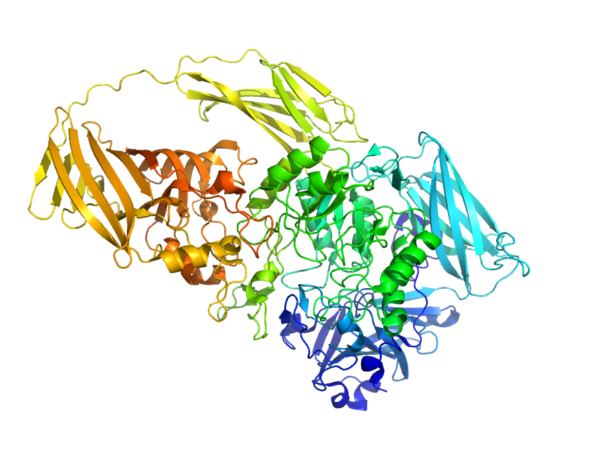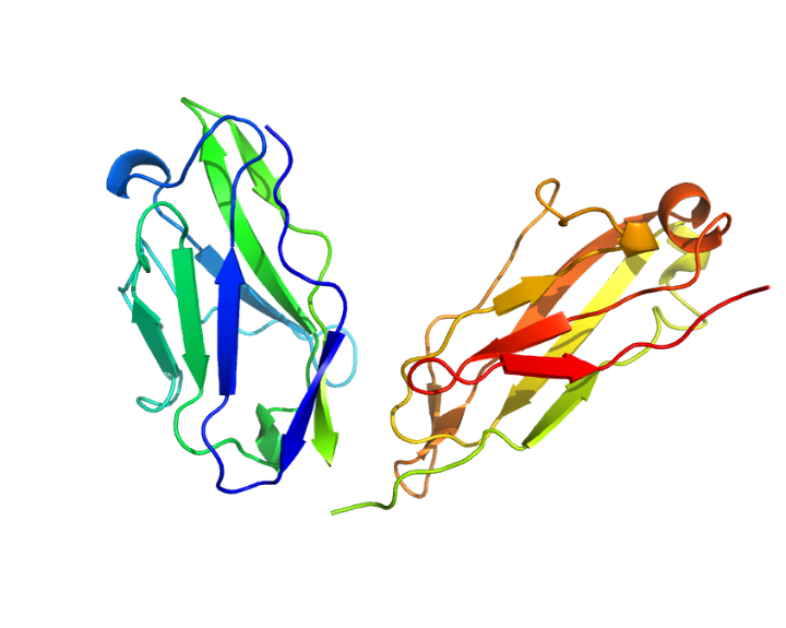 Strukturerne af proteinet myoglobin, et immunoglobulin Fab-fragment samt β-galactosidase er vist nedenfor som cartoons.