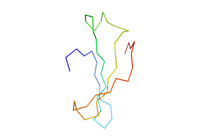 Nedenfor er vist et Cα-diagram for en struktur farvekodet efter de sædvanlige konventioner. Strukturen indeholder en β-plade bestående af fire β-kæder og proteinet har følgende sekvens: