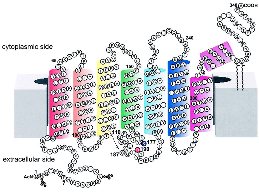 Beskriv den overordnede foldningsklasse og struktur af rhodopsin.