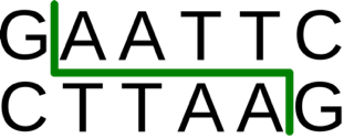 R-enzymet EcoRI fra bakterien Escherichia coli er et af de mest kendte og anvendte restriktionsenzymer indenfor bioteknologi, da det både er meget aktivt og specifikt. Det genkender DNA-sekvensen GAATTC og klipper dsDNA som vist med grønt nedenfor: