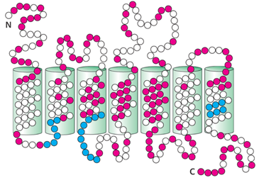 Odorantreceptoren er membranbunden og tilhører klassen af 7TM-proteiner, der består af 7 transmembrane helicer. Dette gør sig også gældende for bitterreceptoren: