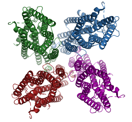 Foldningsklassen er alpha og kanalen er en homotetramer.